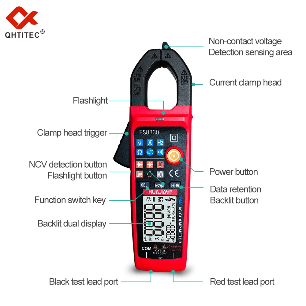 baXmqKfUPHere you can buy QHTITEC Digital Clamp Meter FS8330 AC Current Ammeter DC Voltage Amperimetric Tester Capacitance Diode NCV Auto Range Ture Rms with free delivery to your post office.