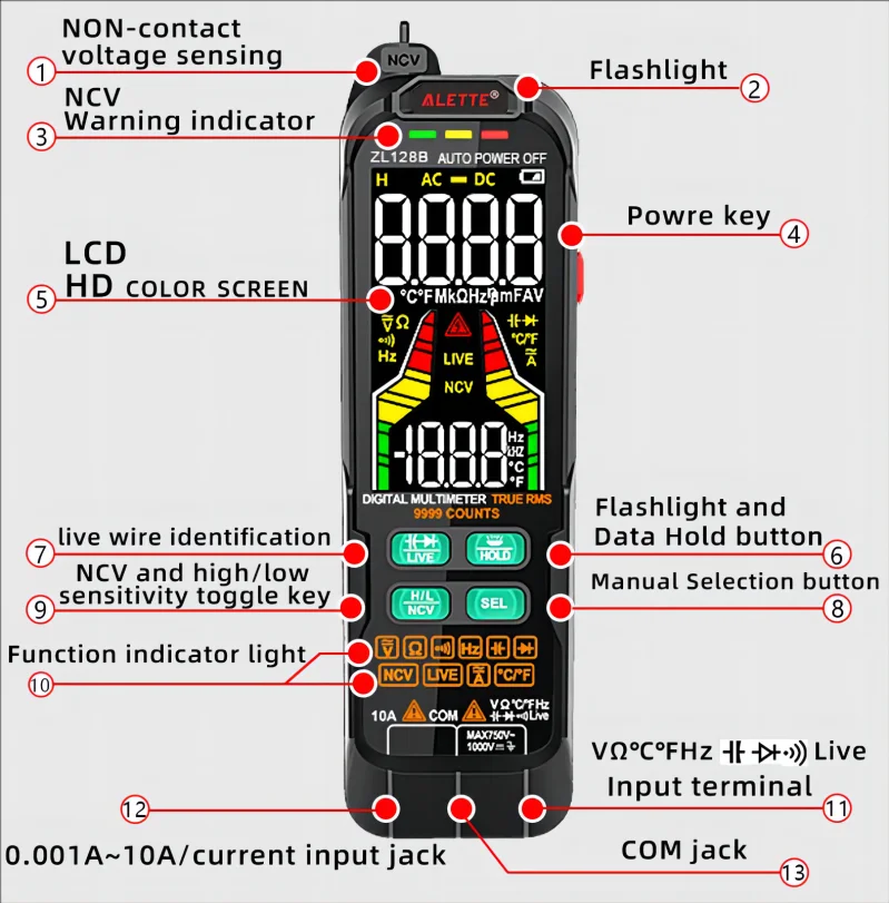 QHTITEC Digital Multimeter NCV AC DC Current Voltage Detector Pen True RMS Capacitance Temp USB Charge Auto Range Multimetro 128 - Купить с бесплатной доставкой