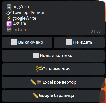 googleWrite — позволяет записать в Google таблицу произвольные данные. Для того, чтобы использовать эту реакцию, необходимо провести подготовку.