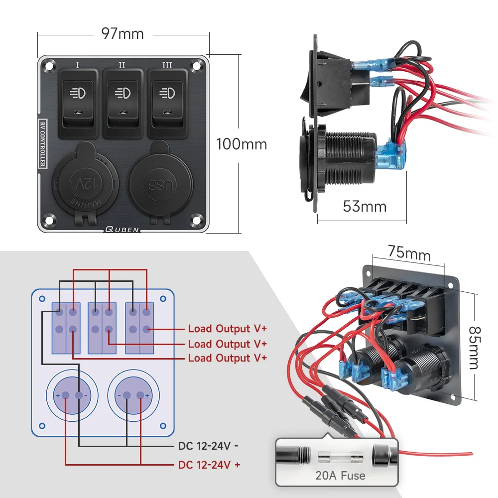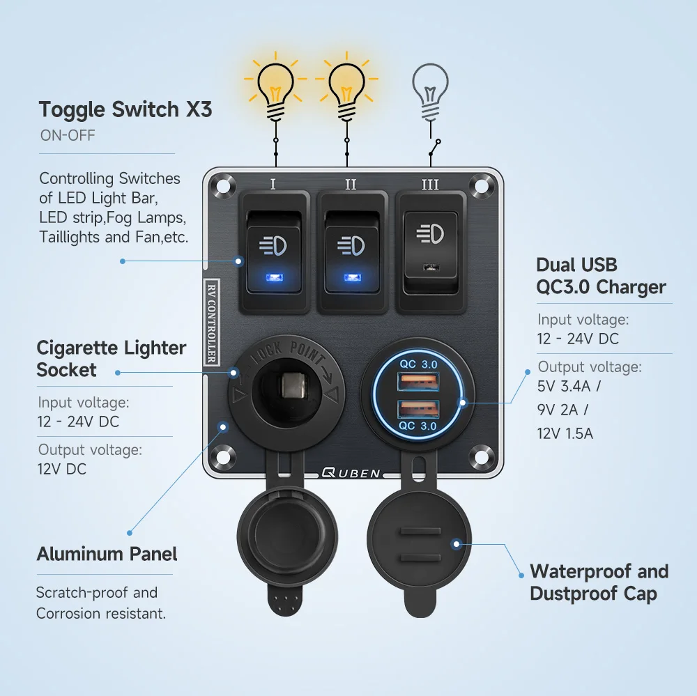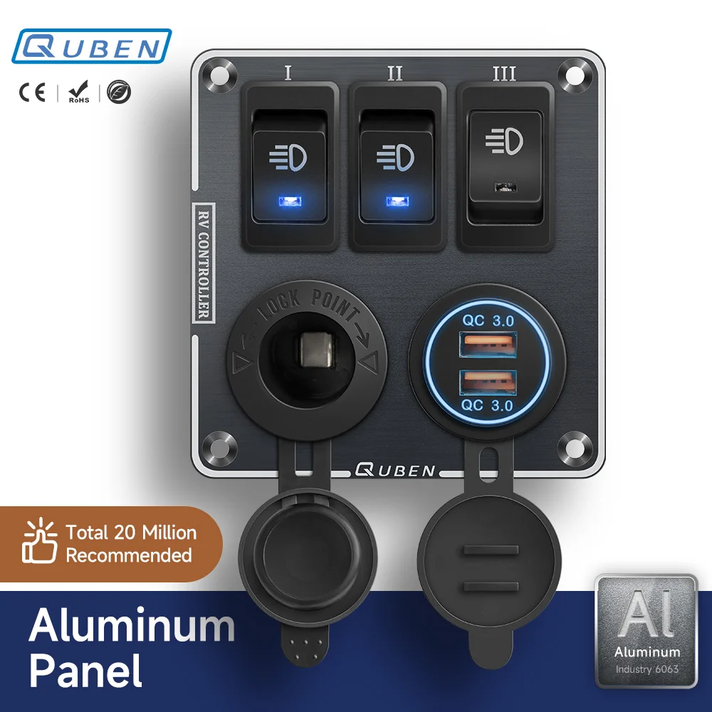EsMiSDYVHere you can buy QUBEN Dual USB QC3.0 Socket Charger /LED Voltmeter /Toggle Switch Multi-Functions Panel for RV Yacht Car Boat Truck Vehicles Van with free delivery to your post office.