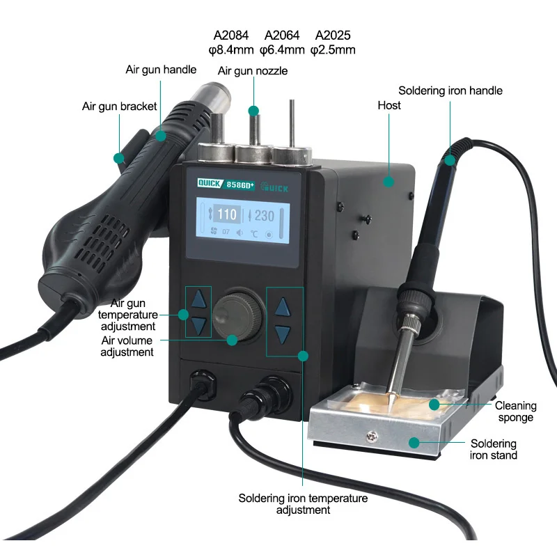 «QUICK 8586D+ 2 in 1 Rework Station Hot Air Gun Electric Soldering Iron Mobile Phone Screen Motherboard Lead-free Repair Tool» по лучшей цене на рынке! Всего за 127$ (12065рублей)
