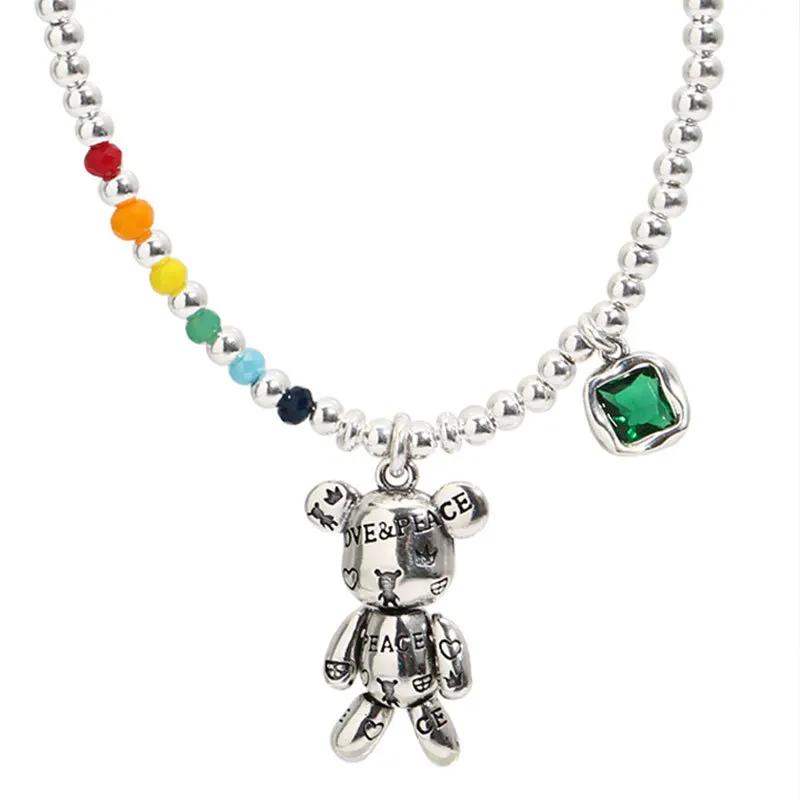 «QWC Plate with S925 Silver Necklace Bracelet Jewelry Set Trend Simple String of Beads Design Bear Zircon Pendant Party Jewelry» по лучшей цене на рынке! Всего за 5$ (475рублей)