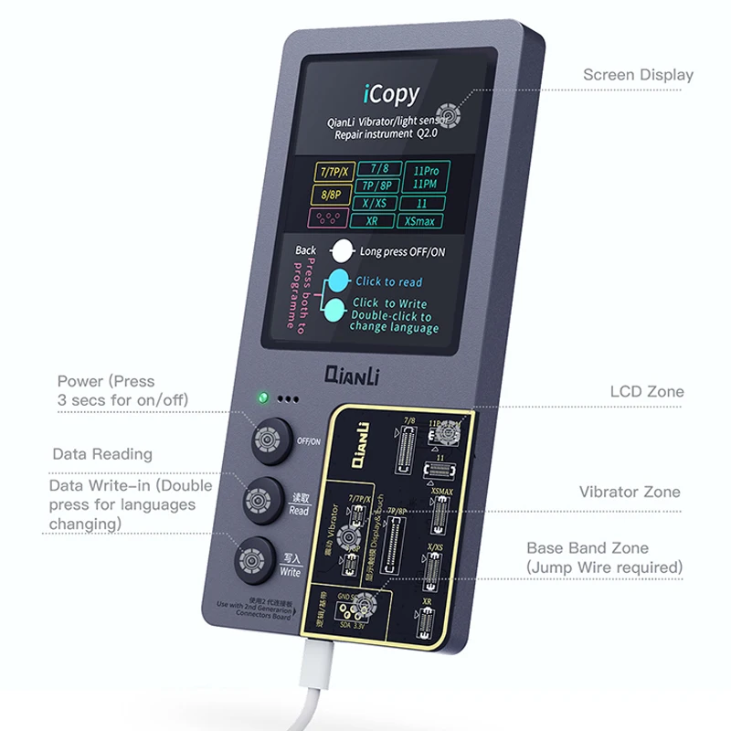 Qianli iCopy Plus 2.2 With Battery Testing Board Programmer For iPhone 7 8 X XR XS Max 11Pro 12 13 LCD Vibrator Transfer EEPROM - Купить с бесплатной доставкой