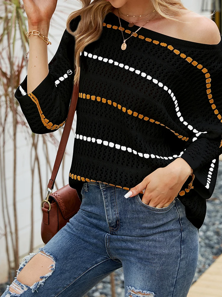 «Qkezz Striped Sweater for Women Hollow Out Loose Fit Fall Sweaters Casual Spring Fashion Elegant Tops 2022» по лучшей цене на рынке! Всего за 21$ (1995рублей)