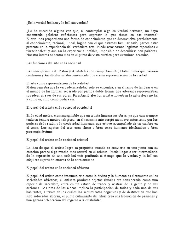 ¿Cómo media el arte entre la belleza y la verdad . . .