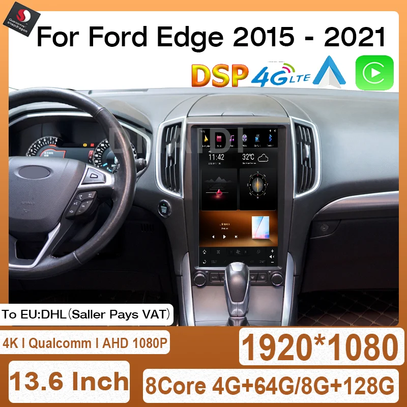 Qualcomm 13.6" Vertical Screen For Ford Edge 2015-2019 Android Auto Car GPS Navigation Radio Multimidia Player Carplay 4G DSP - Купить с бесплатной доставкой