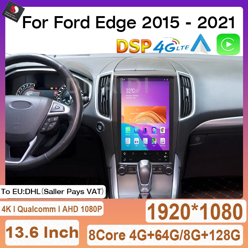 Qualcomm Android Auto 13.6" Vertical Screen For Ford Edge 2015-2021 Car GPS Navigation Radio Multimidia Player Carplay 4G DSP - Купить с бесплатной доставкой