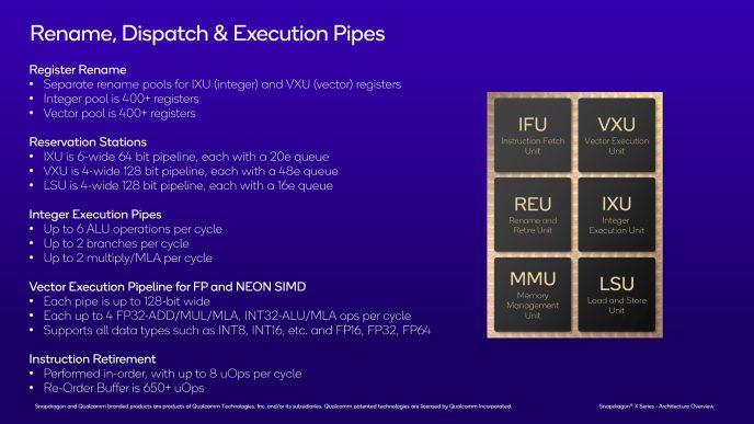 In that respect Oryon is very similar to Firestorm, though the two cores differ in how they handle less common operations. Firestorm also stands apart in using smaller (though still large in an absolute sense) schedulers, and compensating for that with a non-scheduling queue that can delay a stall at the rename stage.
