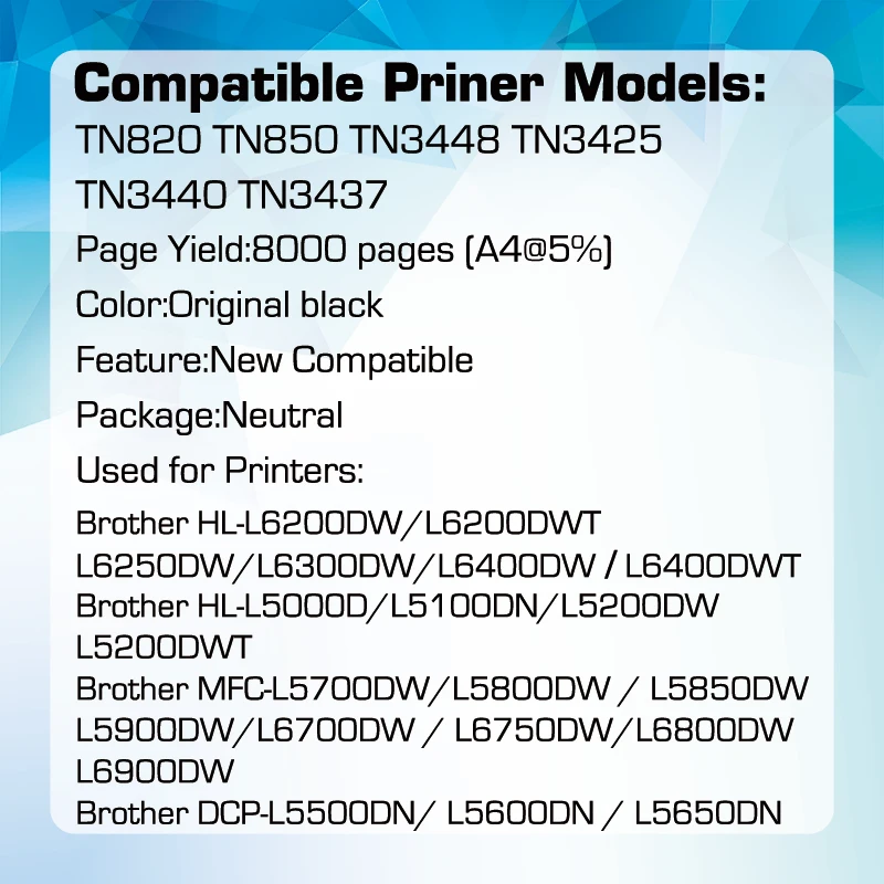 «Qualicom Compatible Toner Cartridge Replacement for Brother TN820 TN850 TN3448 TN3425 TN3440 TN3437 to Use with Brother printer» по лучшей цене на рынке! Всего за 39$ (3705рублей)
