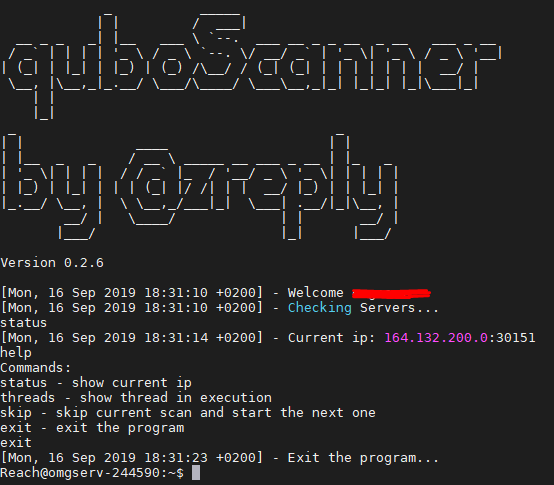 The program supports various commands that can be executed while the software is running. Among the most useful ones is "status" which shows how far the scanner has come, or "exit" to exit.