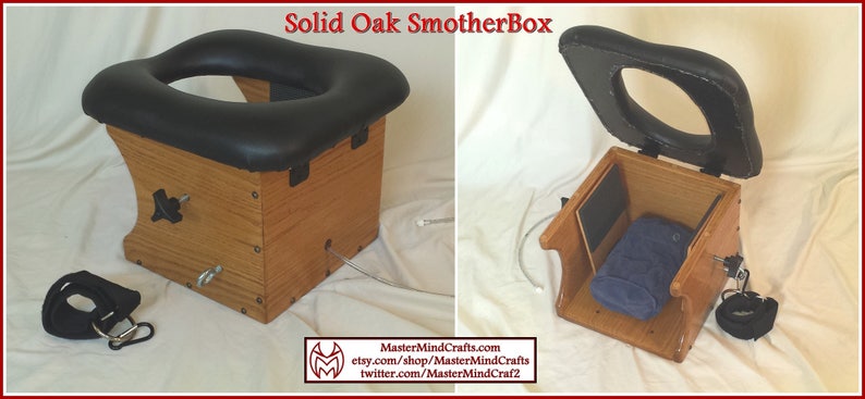 Queening Stool or FaceSitting Stools are for adult pleasure of a female. My designs are created so the persons head is in a comfortable position without the need of anything beyond perhaps a small pillow. This chair has 2 inches of padding on the seat and is covered in a water resistant vinyl fabric. It is closer to a Queening chair in height than a Smothering Box. All trees have knots & imperfections where strength can not be guaranteed, the same applies to my items. I can not make any claim as to what amount of weight or type of use they can endure. By making a purchase you state you understand that due to sanitation issues these items can not be returned and all sales are final. No warranty or guarantee is stated nor implied. Users & all subsequent users absolve me of all liability. Chair will arrive fully assembled, in a red finish, shipped through economical ground transportation via USPS, & is available to the lower 48 contiguous states of the USA only.