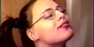 Girl glasses masturbates