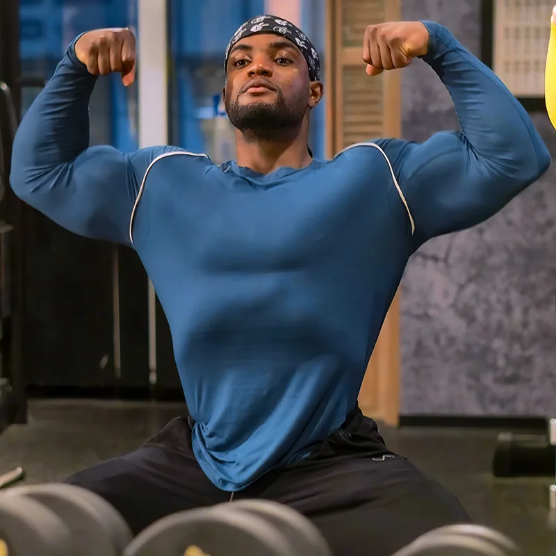 «Quick-drying Tights Men's Sports Long-sleeved European Size Raglan Sleeves Patchwork Shapewear Workout Clothes for Men Muscle» по лучшей цене на рынке! Всего за 18$ (1710рублей)