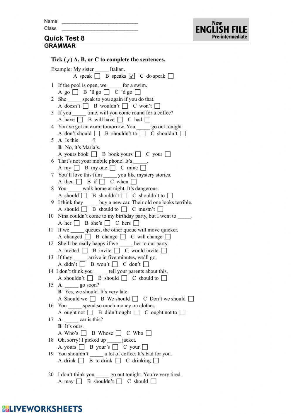 Quick test pre intermediate
