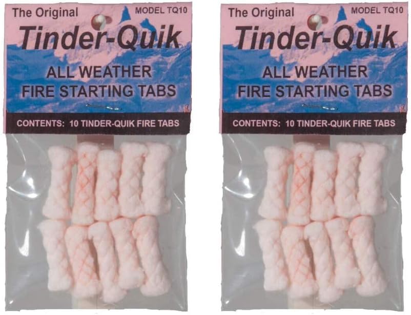 Product description Tinder-Quik fire tabs complement your Spark-Lite purchase and make sure you've got plenty of fire-starting ability . Each Tinder-Quik is specially treated to high standards to ensure the cotton is waterproof and provides more than adequate burn times for starting fires .