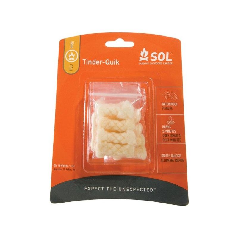 With its waterproof and windproof design, Tinder Quik is dependable tinder for starting a fire in any situation, from overnight hikes to survival emergencies . Pack Tinder Quik with your survival gear or bring it camping so you can confidently light campfires .