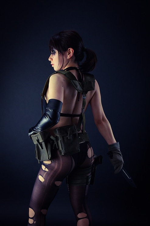 Facial expressions are essential when doing a cosplay photoshoot. You really need to know the character so you can represent them. Ally did that with Quiet. The little smirk with intense eyes is what that character would do!