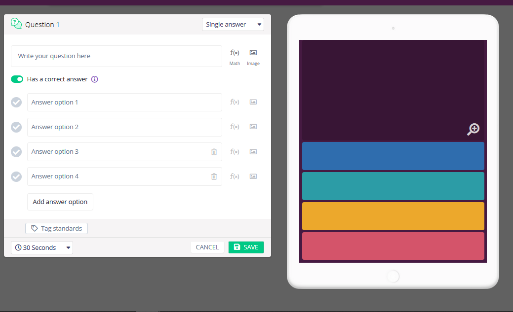 Kelainan untuk quizizz ialah ia ada equation editor (anda boleh buat soalan matematik dengan dibekalkan simbol2 dan formula matematik). Kuiz anda boleh disertakan gambar. Lihat gambar rajah diatas. Soalan dan jawapan anda boleh sertakan gambar. Anda boleh buat soalan menggunakan gambar dan jawapan pun leh pakai gambar. hehehe. Jangan lupa letak jawapan yang betul ye yang hanya tick tanda right di sebelah kiri anda.
