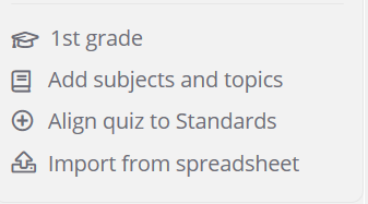 Pada ruangan ini anda boleh ubah grade yang anda tetapkan pada awal kuiz tadi dan juga boleh ubah atau tambah subjek dan topik kuiz anda. Align quiz to standard pula dapat menjadikan kuiz anda dihasilkan mengikut standard pendidikan di setiap daerah amerika ye bukan malaysia. Jika mahu anda boleh edit dengan mencari didnt find your standard. Import from spreadsheet, ini proses paling senang untuk anda kerana anda boleh buat soalan tanpa menggunakan internet. Apa? Ye tanpa menggunakan internet kerana ia memberikan and format excel. Ok ini task anda semua. Anda perlu klik import from spreadsheet dan lihat apa benar admin katakan tadi.