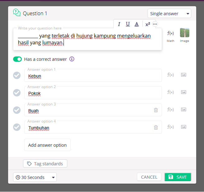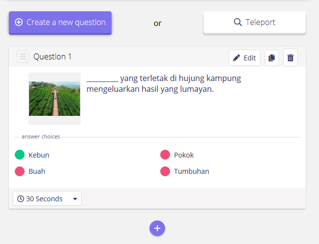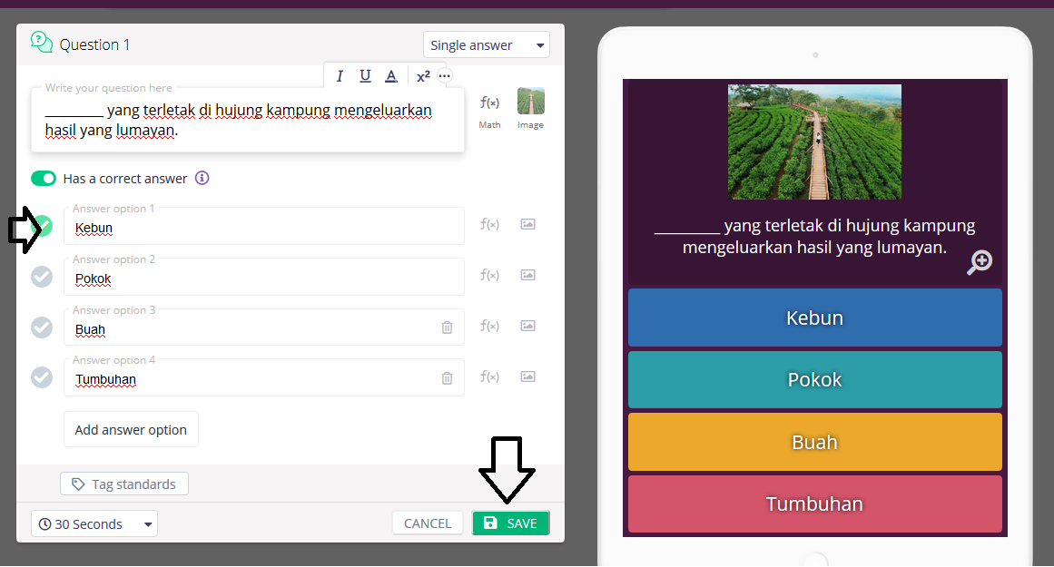 Kita kembali semula selepas kita upload gambar. Selepad kita cipta soalan dan jawapan.