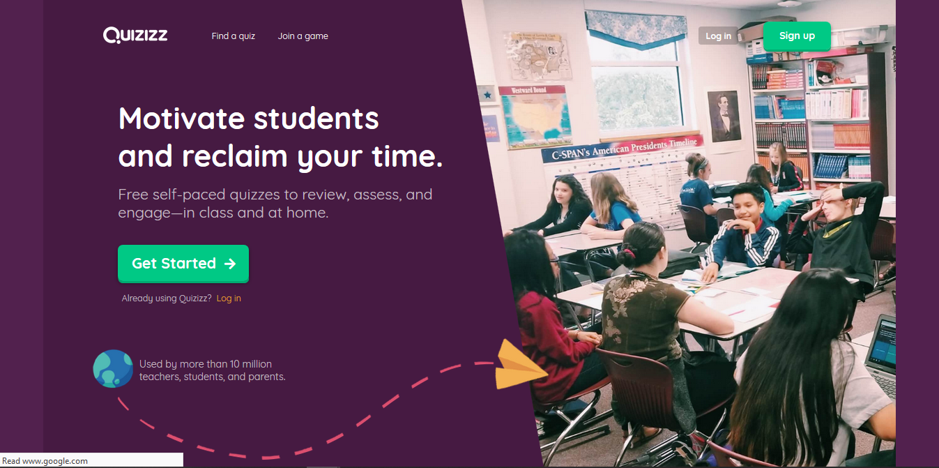 Gambar di atas merupakan paparan utama sebelum kita daftar masuk Quizizz. Tutorial seterusnya kita akan mengetahui cara mendaftar Quizizz.