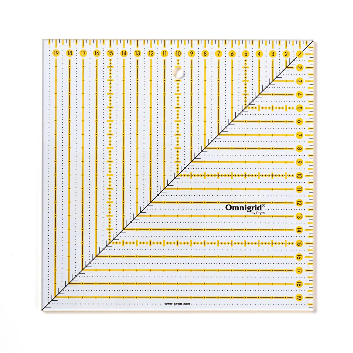 Découper des carrés ou des rectangles, vérifier des diagonales ou centrer un motif : Avec cette règle spéciale carrée Omnigrid®, la découpe patchwork précise et efficace devient un jeu d'enfant. La règle pratique convient non seulement à la coupe précise de tissus à motifs, mais également à la création de carrés à partir de bandes diagonales, ainsi qu'à l'ajustement rapide de petits blocs carrés. Ce biais carré bien-aimé est disponible en centimètres ou en pouces, ce qui permet de créer des modèles en anglais rapidement et de manière fiable sans conversion. Adaptée également aux travaux de couture ou au graphisme, la règle carrée est un assistant précieux et un incontournable dans le poste de travail de toute couturière. Y compris un guide de référence sur les techniques de coupe de base !