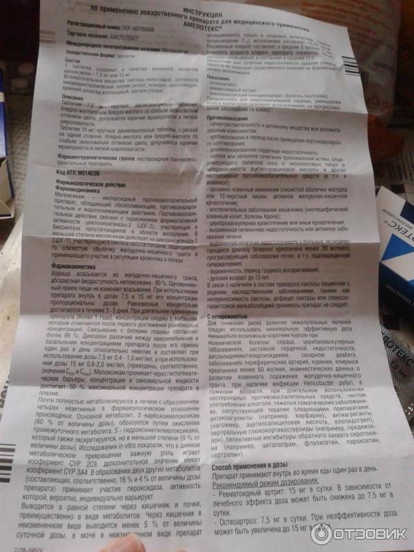 Амелотекс . Инструкция к применению . Отзывы . Цена