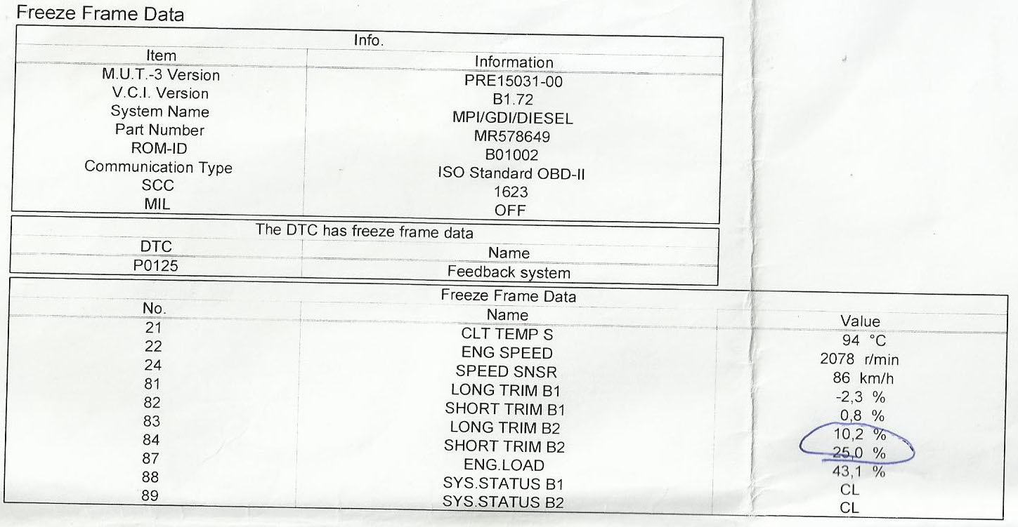 Р0125 ошибка митсубиси