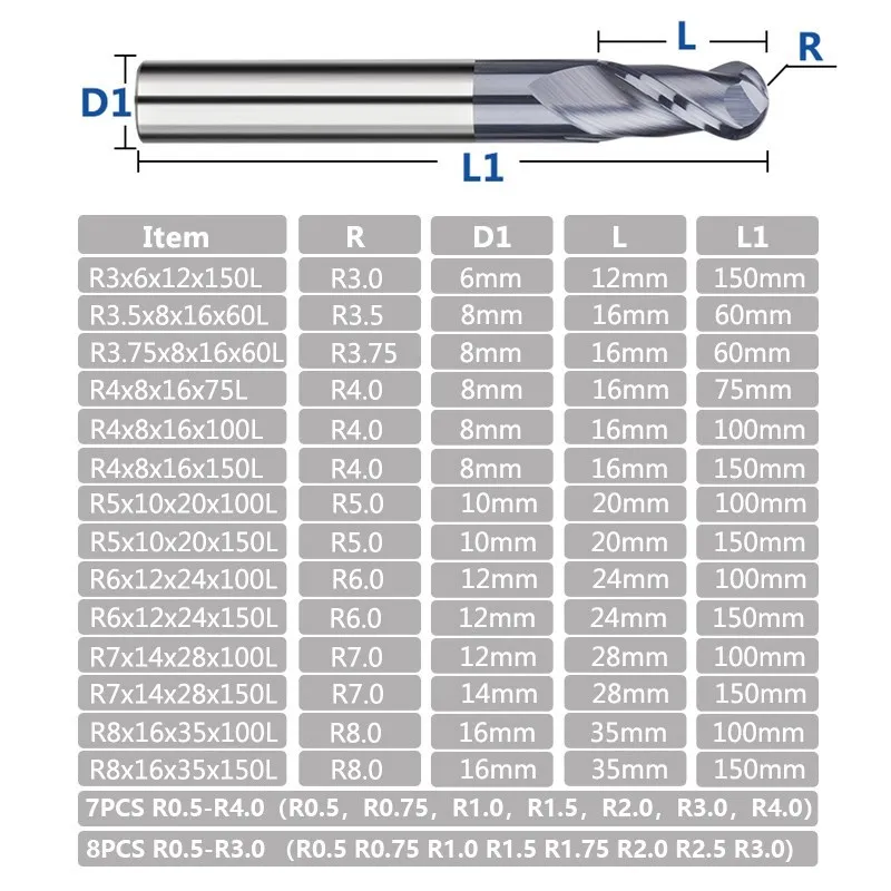 «R0.5-R6.0 Ball Nose End Mill 2 Flute Carbide Milling Cutter CNC Machine Router Bit Milling Tools Radius Cutter» по лучшей цене на рынке! Всего за 114$ (10830рублей)