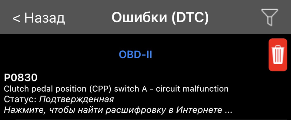 Р0830 ошибка гранта
