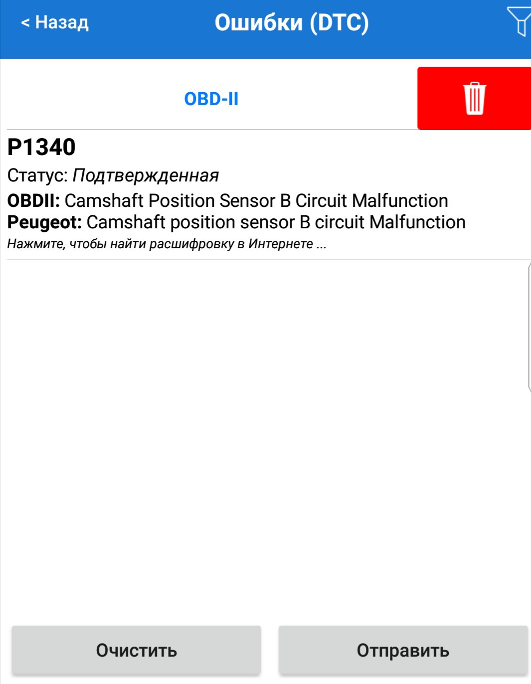 Р1340 ошибка пежо