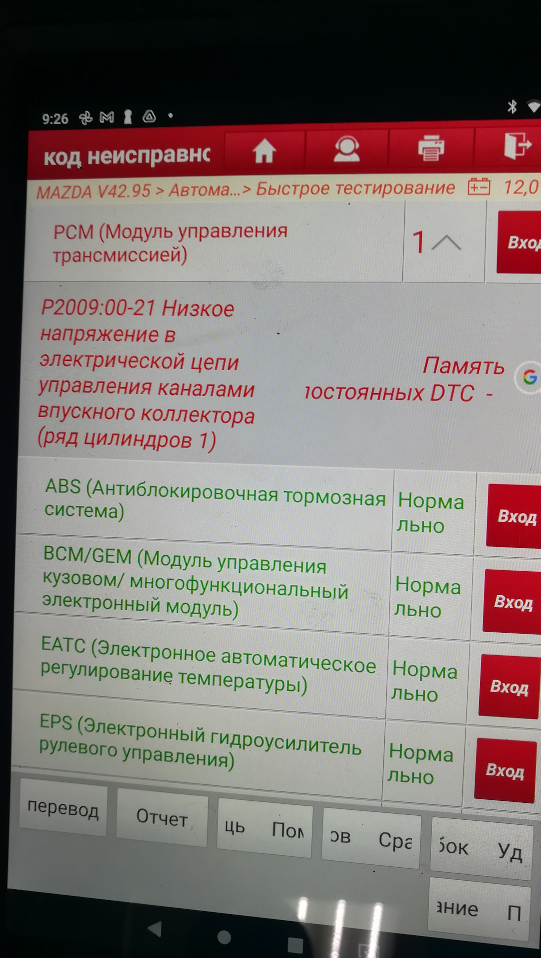 Р2009 мазда ошибка