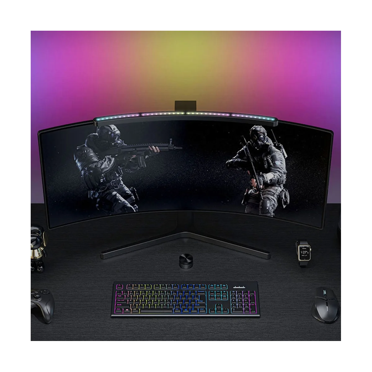 VYjMtInZPHere you can buy RA97 Curved Monitor Light RGB Color Sound-Sensitive Music PC Hanging Game Dimming Eye-Care Wireless Remote Control(A) with free delivery to your post office.