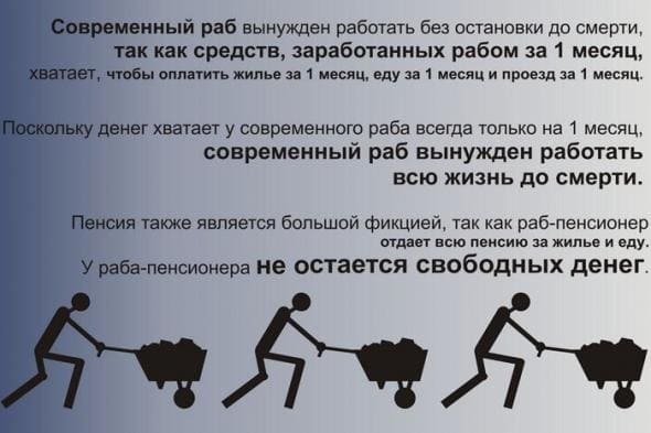 Я вот прикинул, по различным данным, в наше время 85% людей ходят на работу. Но в слове работа есть три волшебных буквы - РАБ.