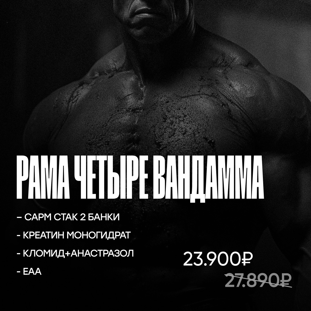 Набор «РАМА ЧЕТЫРЕ ВАНДАММА» включает в себя самые мощные спортивные добавки, эффект которых сравним с действием запрещенных стероидов, без вреда для здоровья