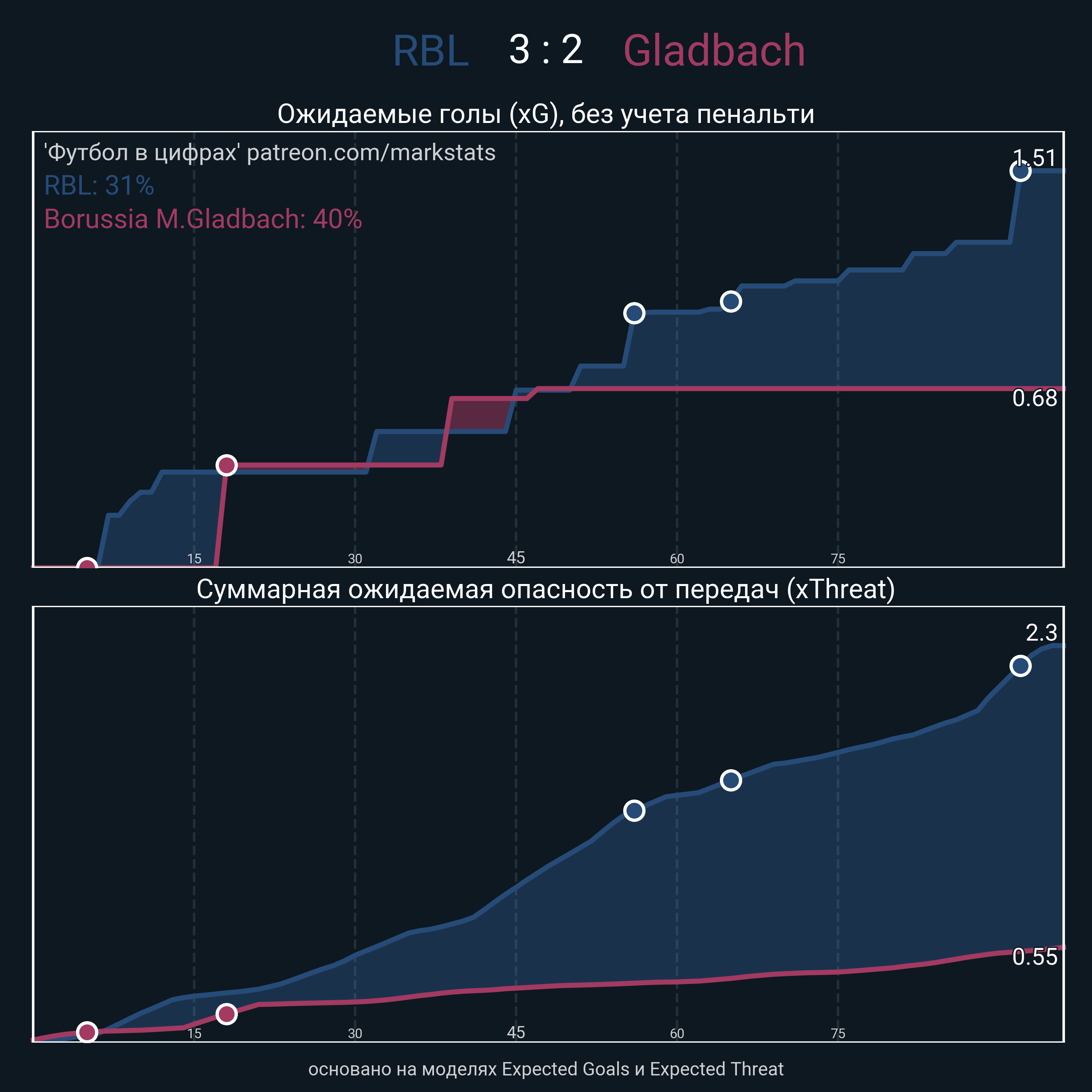 Футбол в цифрахСтатистика матча RBL - Borussia M.Gladbach