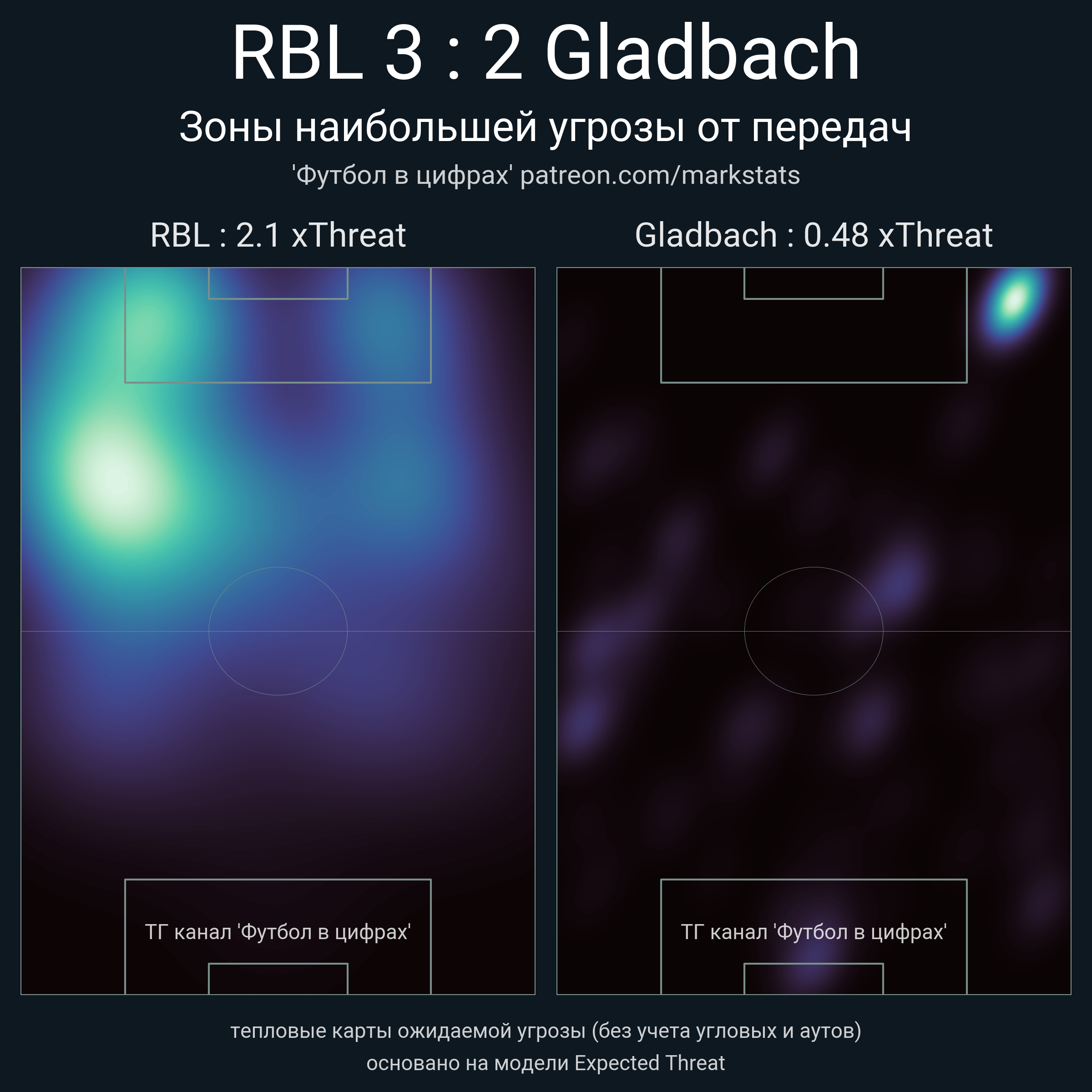 ▪ xThreat без учета угловых: 2.1 - 0.48