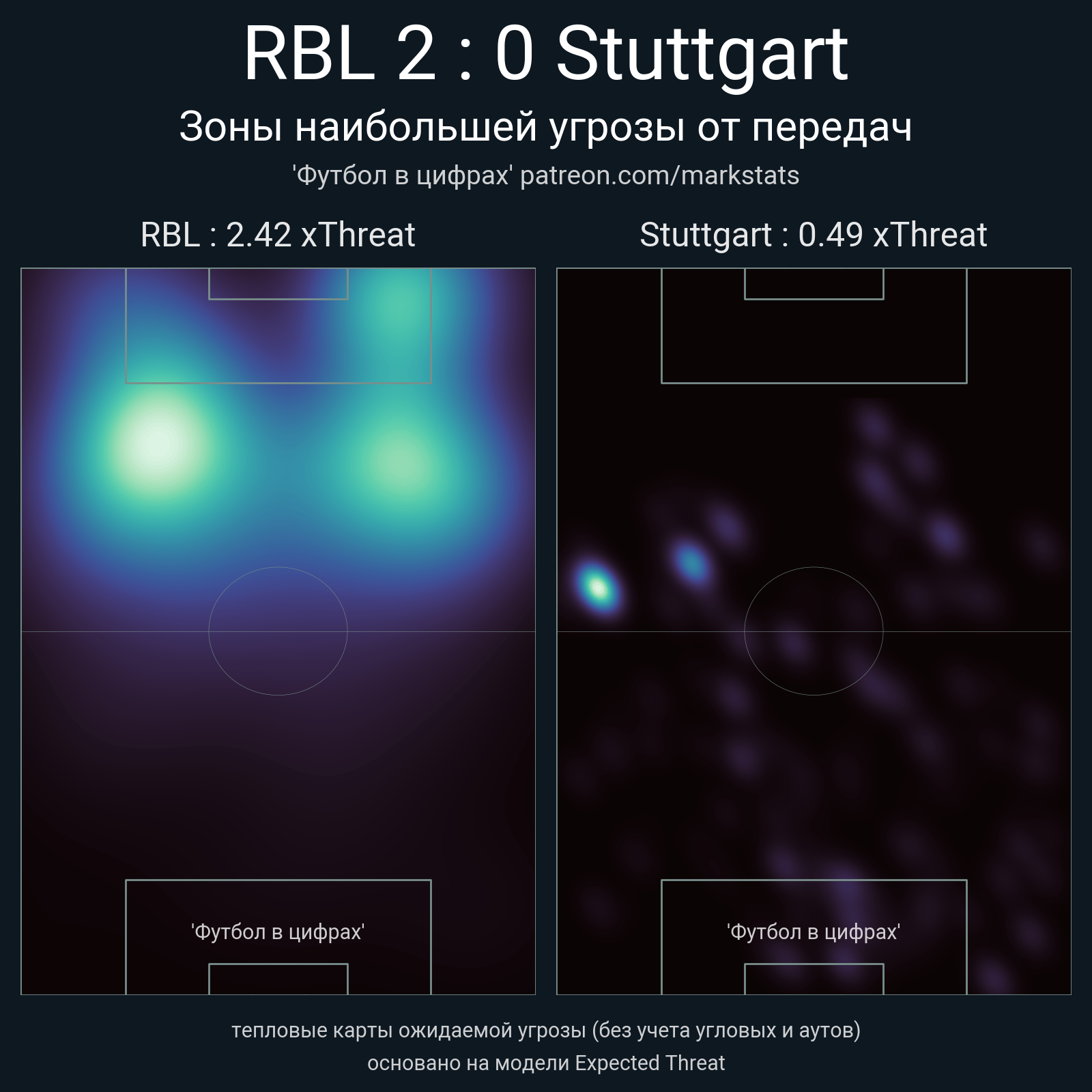 ▪ xThreat без учета угловых: 2.42 - 0.49