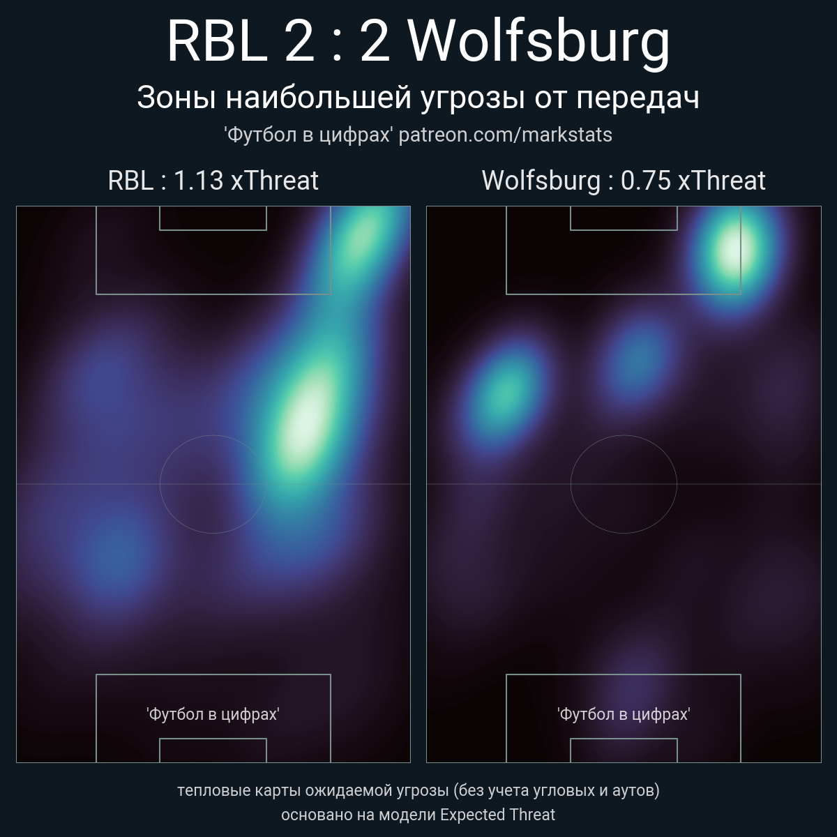▪ xThreat без учета угловых: 1.13 - 0.75