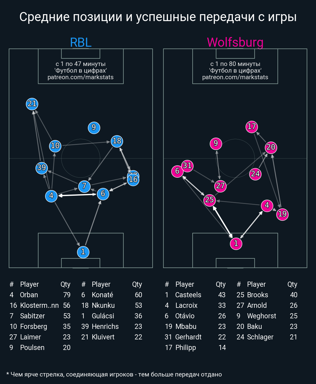 Футбол в цифрахСтатистика матча RBL - Wolfsburg