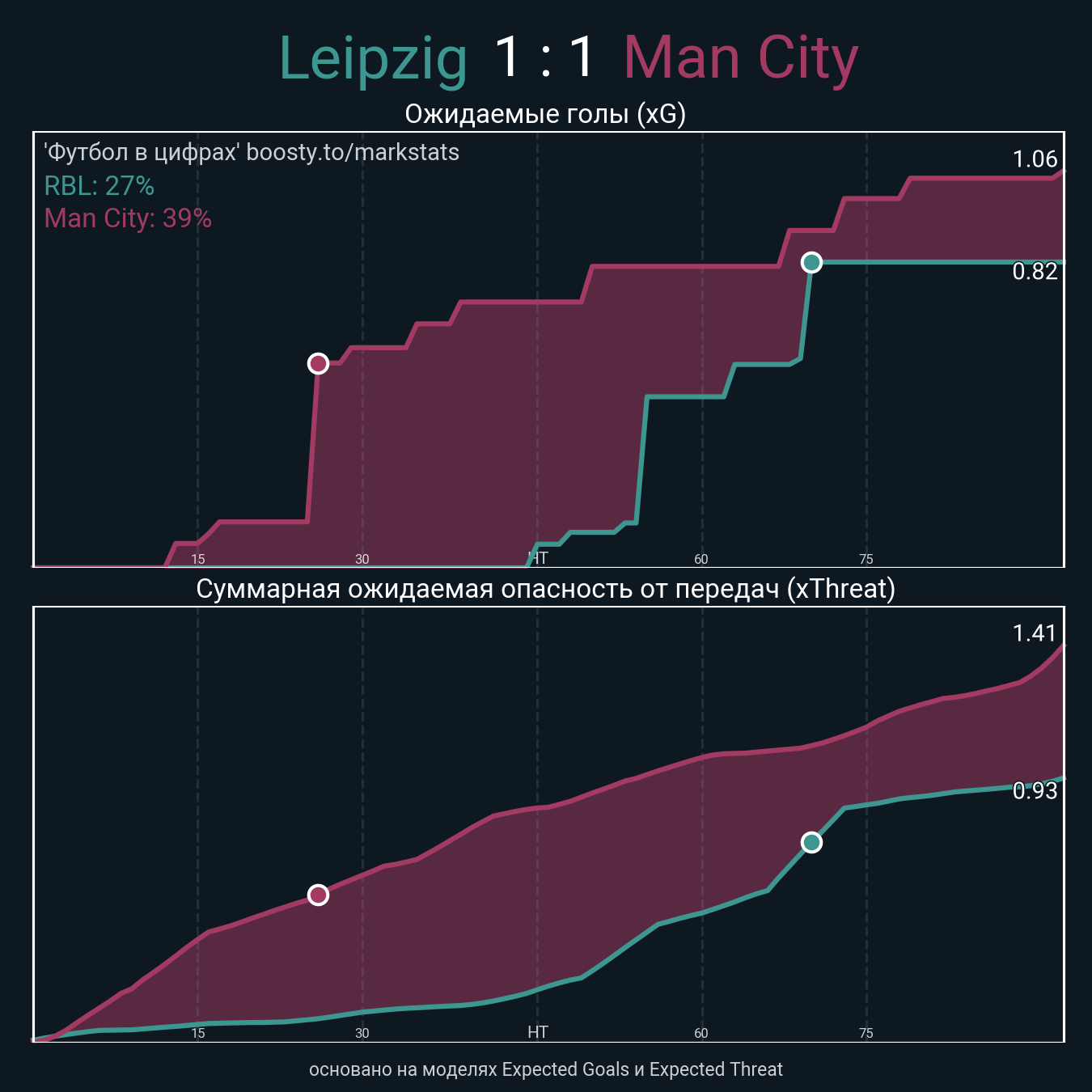 Ожидаемые голы (NPxG): 0.82 - 1.06