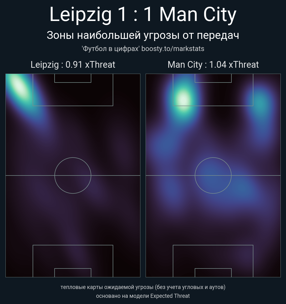 xThreat без учета угловых: 0.91 - 1.04