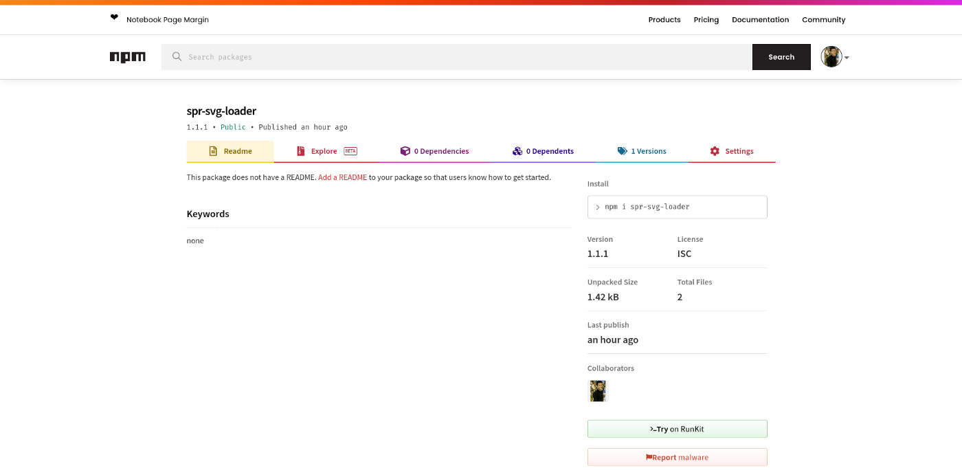 Следующим шагом является создание пакета NPM с тем же именем (spr-svg-loaders) в общедоступном реестре NPM.