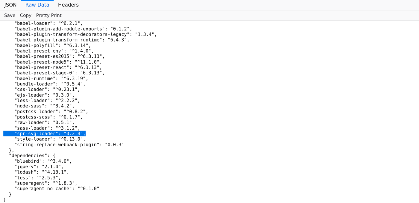 Я скачал файл package.json и начал проверять приватные пакеты с помощью инструмента Confused от visma-prodec.