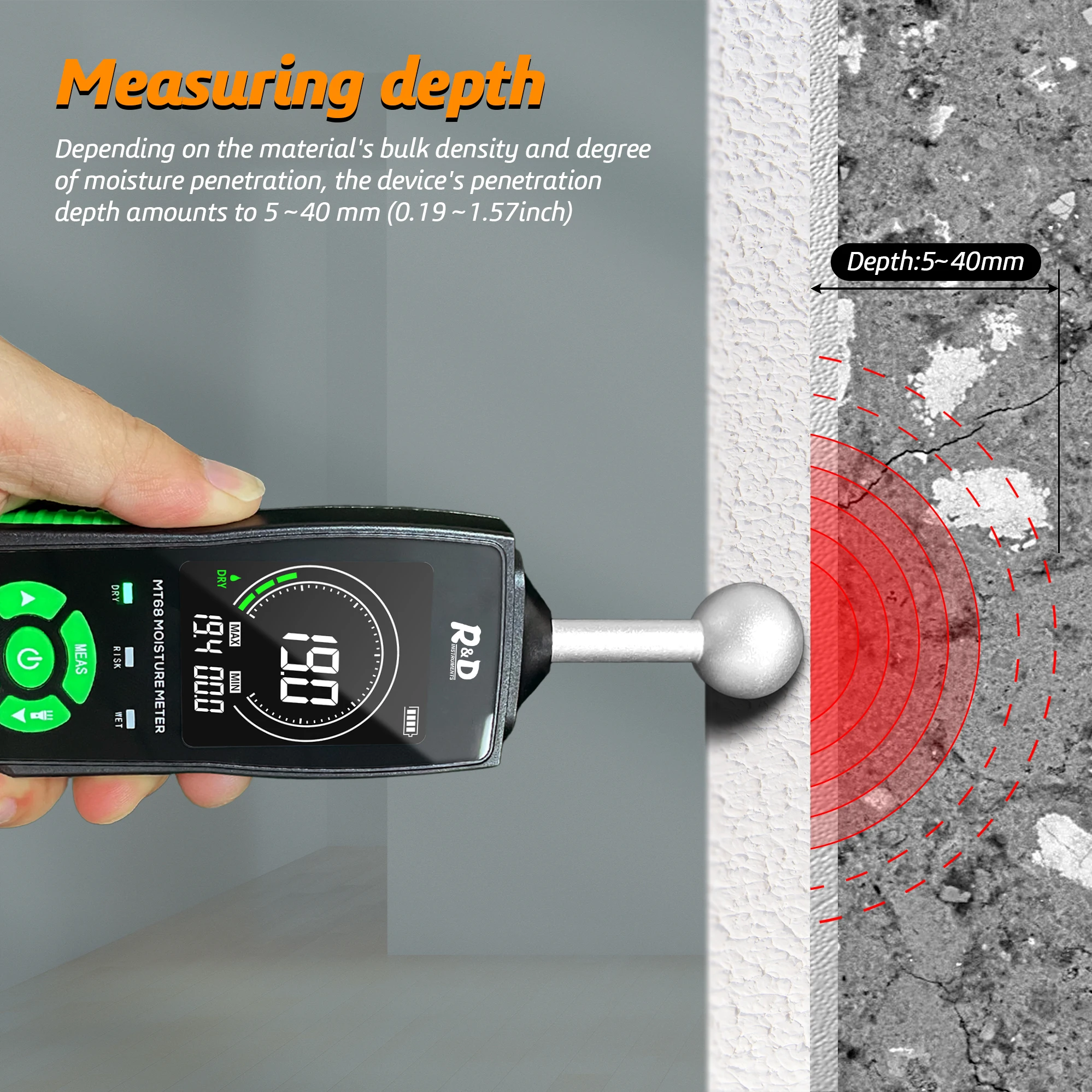 "R&D MT68 Digital Wood Moisture Meter Non-contact Timber Damp Detector LCD Screen Hygrometer Alarm Humidity Tester Pinless Detect" * Buy Now With Free Shipping Just For $55