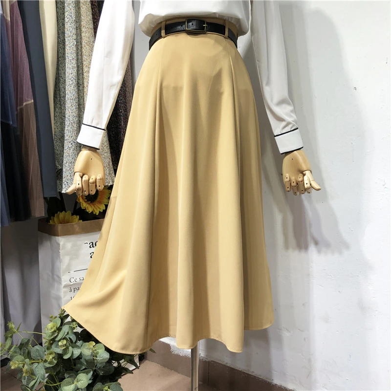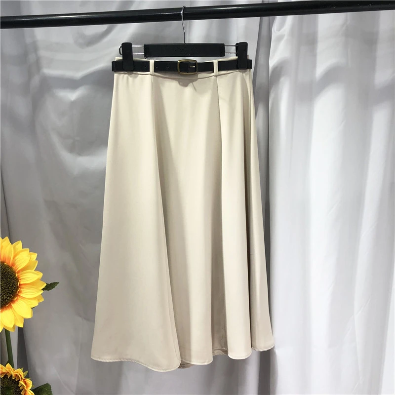 "REALEFT 2021 New Spring Summer Umbrella Women's Skirts with Belted High Waist Solid Elegant A-Line Female Office Mi-Long Skirts" * Buy Now Just For 14$