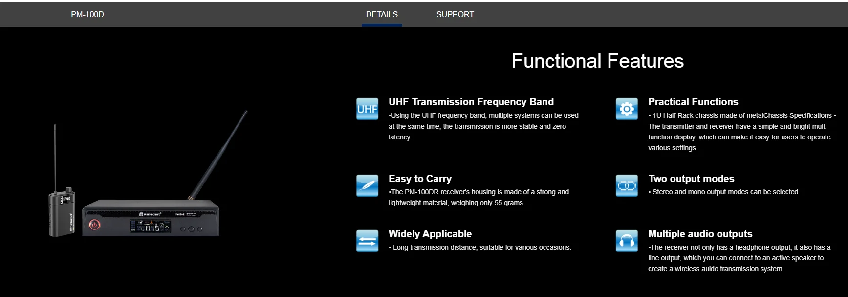QdBbQORTRFHere you can buy RELACART PM-100D Stereo Wireless In-Ear Monitor System Multiple audio outputs UHF Transmission Frequency Band with free delivery to your post office.