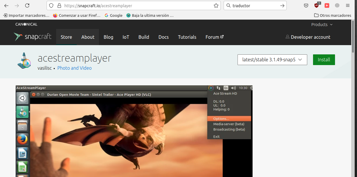 Necesitamos instalar Acestream mediante paquete Snap.