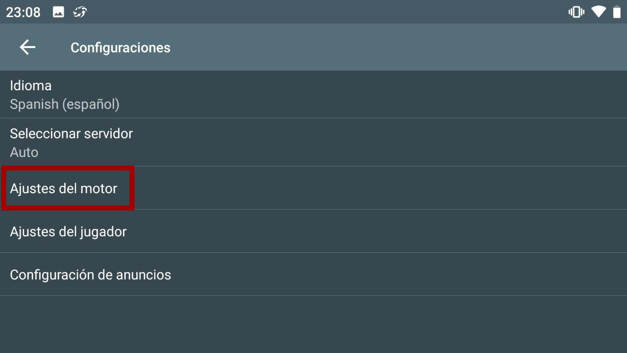 Y luego Ajustes del motor.