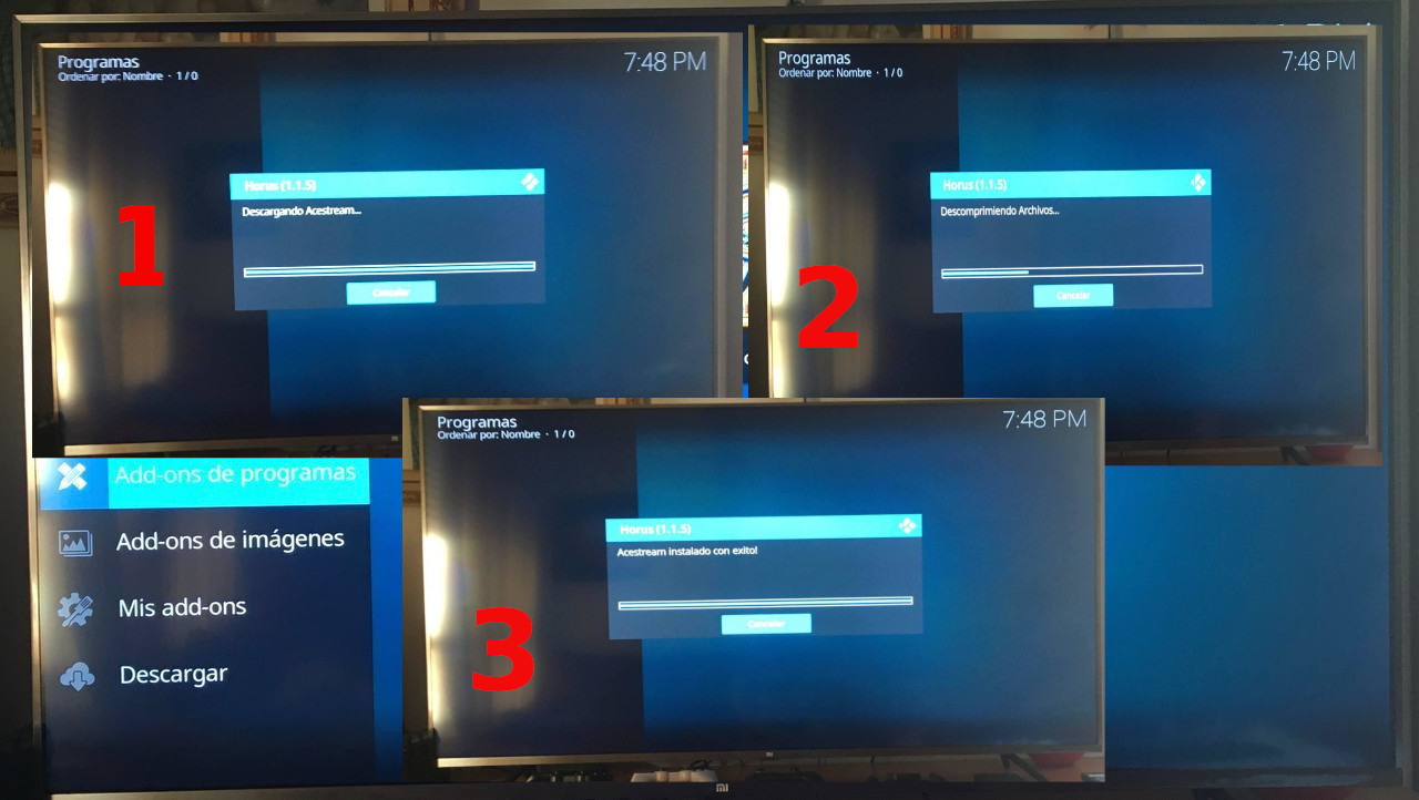 Se empiezan a descargar, descomprimir e instalar los módulos Acestream.
